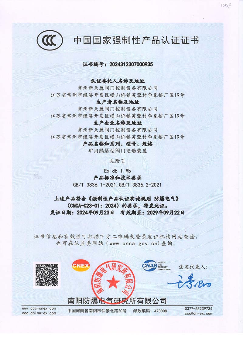 礦用隔爆QB127V中國國家強制性產品認證證書105.2